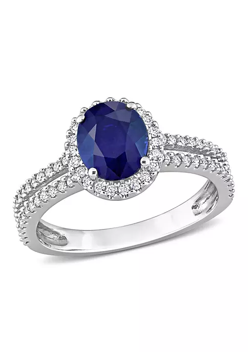 - 1.8 ct. t.g.w. blue sapphire, 3/8 ct. t.w. diamond