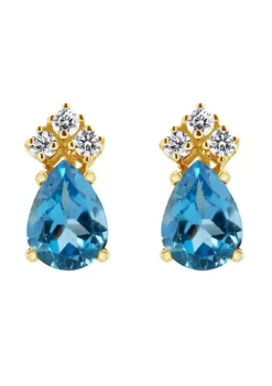 Best reviews of 💯 14K Gold 6×4 Pear Shape Blue Topaz Diamond Accent Earrings by Belk & Co. ✔️