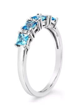 Best Pirce 😍 Sterling Silver 3mm Princess Cut Blue Topaz Diamond Accent Ring by Belk & Co. 🌟