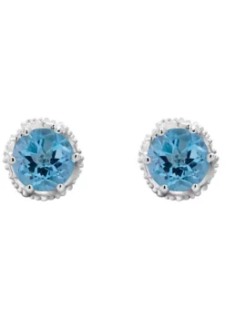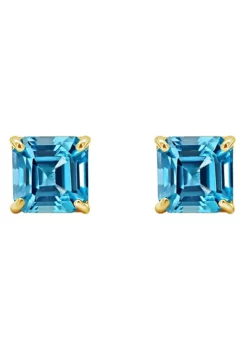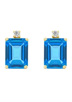 Hot Sale โจ 14K Gold 8×6 Emerald Cut Blue Topaz Diamond Accent Earrings by Belk & Co. ๐