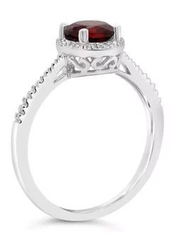 Promo โค๏ธ Sterling Silver 6mm Round Garnet Diamond Accent Halo Ring by Belk & Co. ๐ฅ