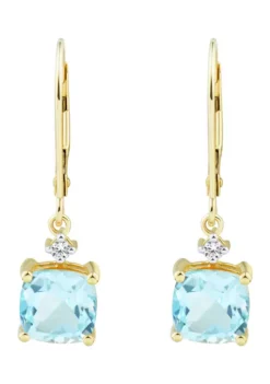 Outlet 🔔 1/10 ct. t.w. Diamond and Sky Blue Topaz Earrings in 10K Yellow Gold by Belk & Co. 👍