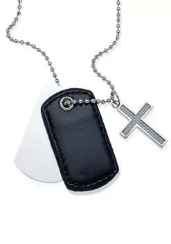 Promo โ๏ธ Men’s Stainless Steel Cross and Leather ๐ถ Dog Tag Pendant by Belk & Co. ๐