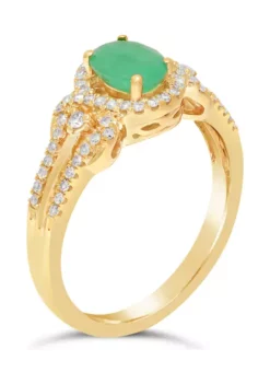 Budget ๐งจ 3/4 ct. t.w. Emerald and 1/8 ct. t.w. Diamond Ring in 10K Yellow Gold by Belk & Co. ๐งจ