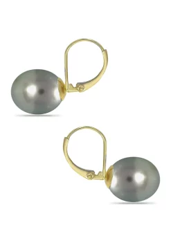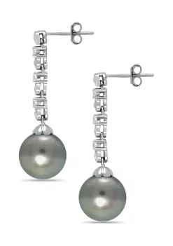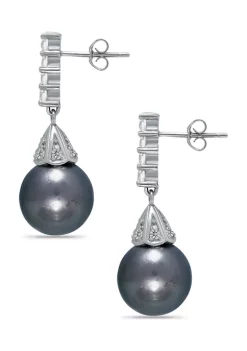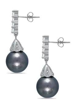 Hot Sale โ 12MM Tahaitian Pearl and White Topaz Drop Earrings, Sterling Silver by Belk & Co. ๐