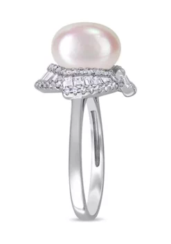 New 🤩 Sterling Silver 6mm Round Pearl Diamond Accent Halo Pendant Necklace by Belk & Co. 😍