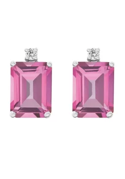 Budget ๐ฏ 14K Gold 8×6 Emerald Cut Pink Topaz 1/8 Cttw Diamond Earrings by Belk & Co. โจ