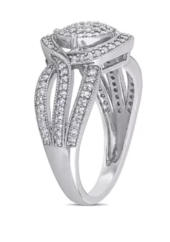 Best Sale โ๏ธ 1/2 ct. t.w. Diamond Swirl Halo Triple Row Engagement Ring by Belk & Co. ๐