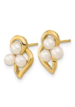 New 🎉 14K Yellow Gold 3-4mm White Button Freshwater Cultured Pearl Post Earrings by Belk & Co. ✔️