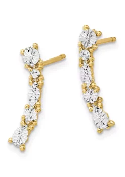 Outlet ๐ 14K Yellow Gold White Rhodium Polished and Diamond Cut Post Earrings by Belk & Co. ๐ฅ