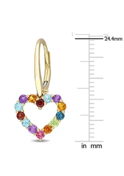Deals ⭐ 1 CT TGW Multi-Color Gemstone Heart Leverback Earrings in 10k Yellow Gold by Belk & Co. ❤️