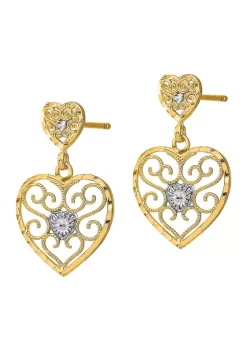 Deals ✔️ 14K Yellow Gold with Rhodium Heart Beaded Filigree Dangle Earrings by Belk & Co. 😉