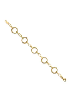 Deals 👏 14K Yellow Gold Diamond Cut and Textured Circles Fancy Link Bracelet by Belk & Co. ⌛