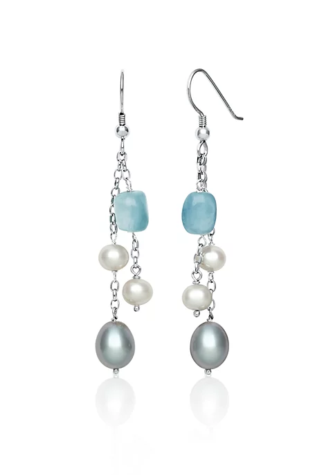 - 2 Milky Aquamarine, 4 White Freshwater Pearls, and 2 Gray Freshwater Pearls