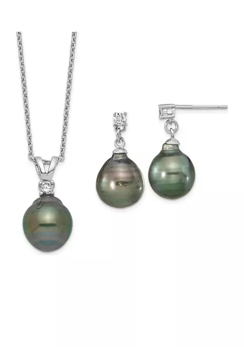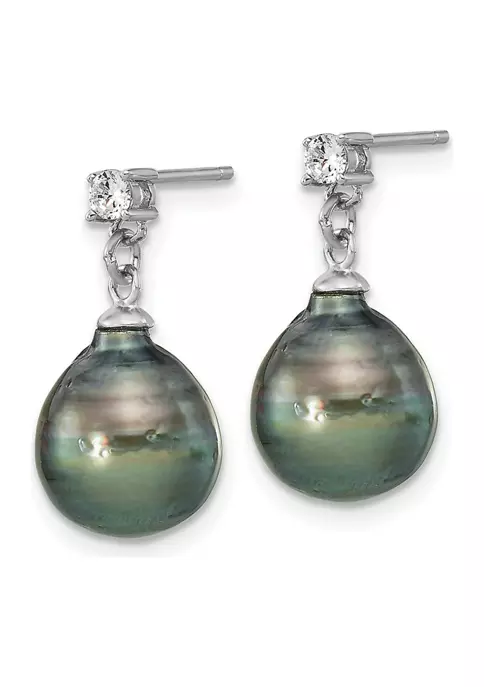 - Post back, Spring ring clasp, 3 Pearl, 3 Cubic Zirconia