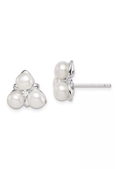 - Post back, 2 Cubic Zirconia, 6 Shell Pearl